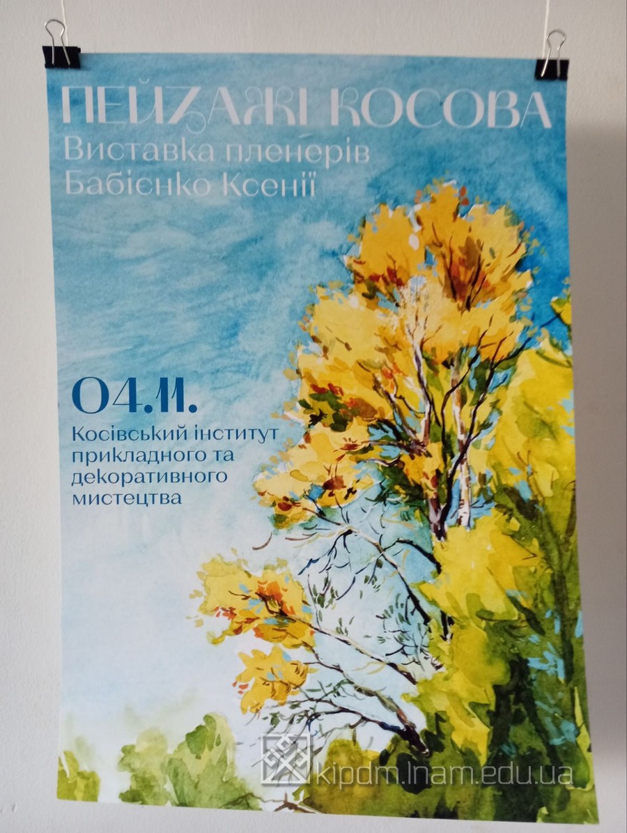 04 лист.,2024 НОВИНИ COMMENTS Перегляди: 321 Tags: ВИСТАВКА, БАКАЛАВР, ДМ Виставка студентки першого курсу Бабієнко Ксенії Пейзажі Косов Детальніше