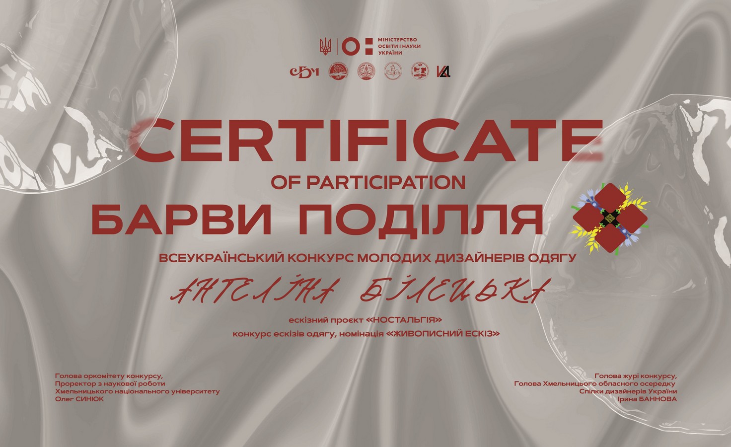 Курсові роботи та дипломні проекти студентів кафедри дизайну успішно демонструються на всеукраїнських та міжнародних конкурсах, виставках, відзначені почесними дипломами. Кафедра є засновником Міжнародного конкурсу молодих модельєрів «Водограй», який відбувся вже десятий раз поспіль.