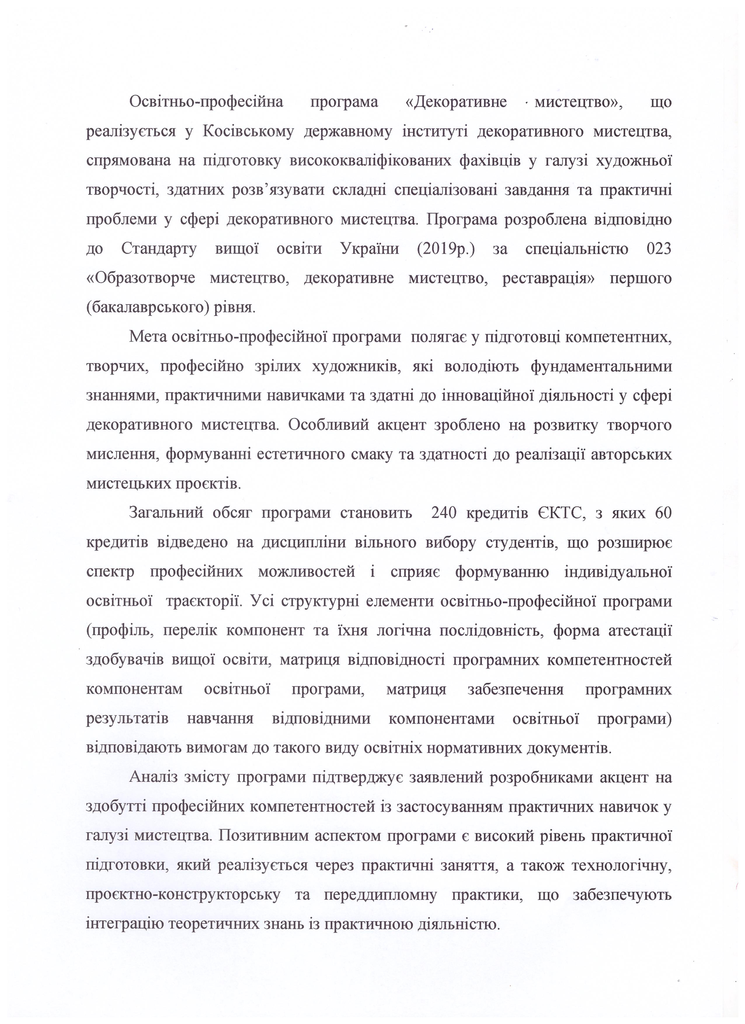 Освітньо-професійна програма "Декоративне мистецтво" 2021
