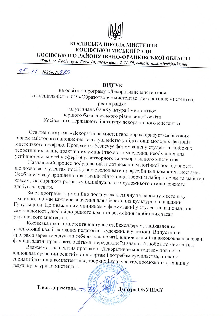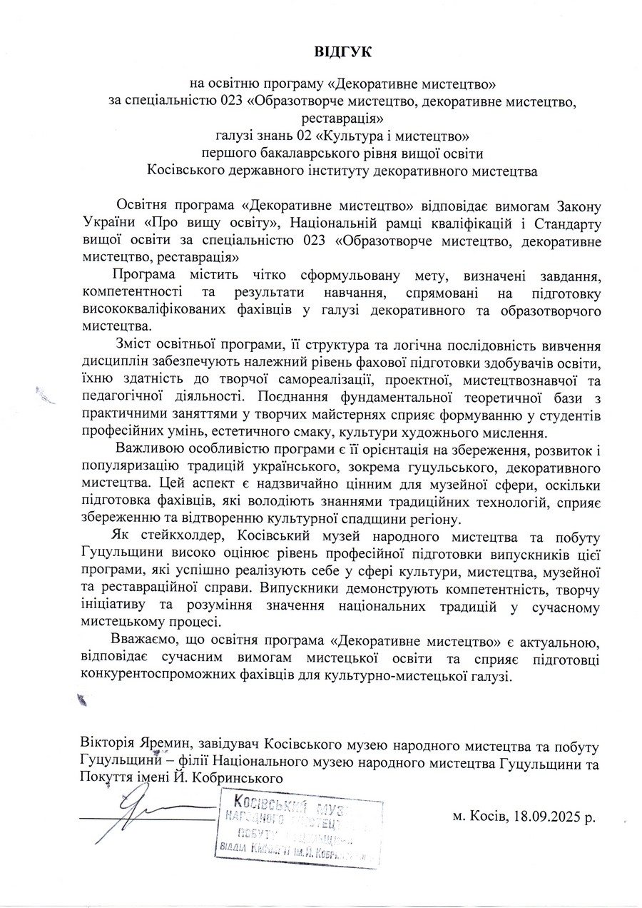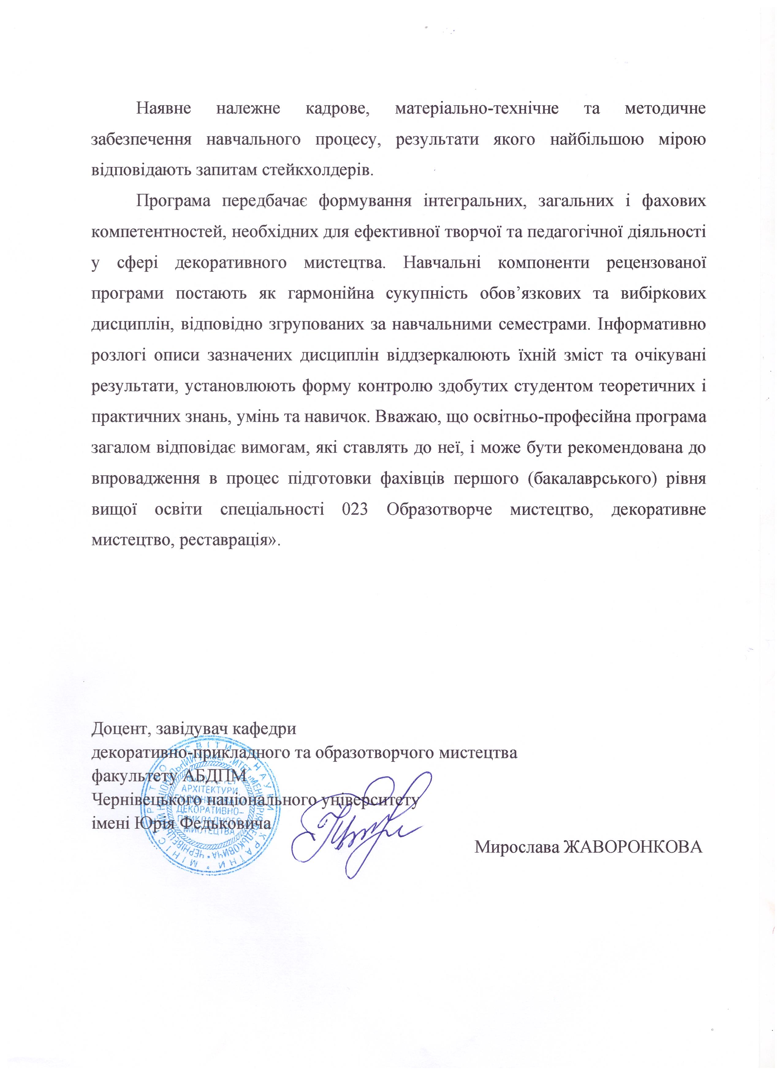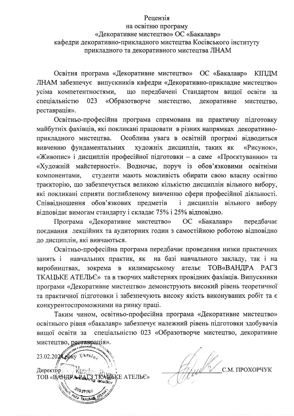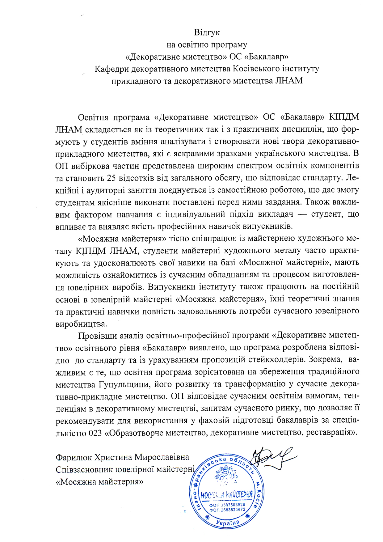 Відгуки на освітню програму "Декоративне мистецтво" ОС БАКАЛАВР