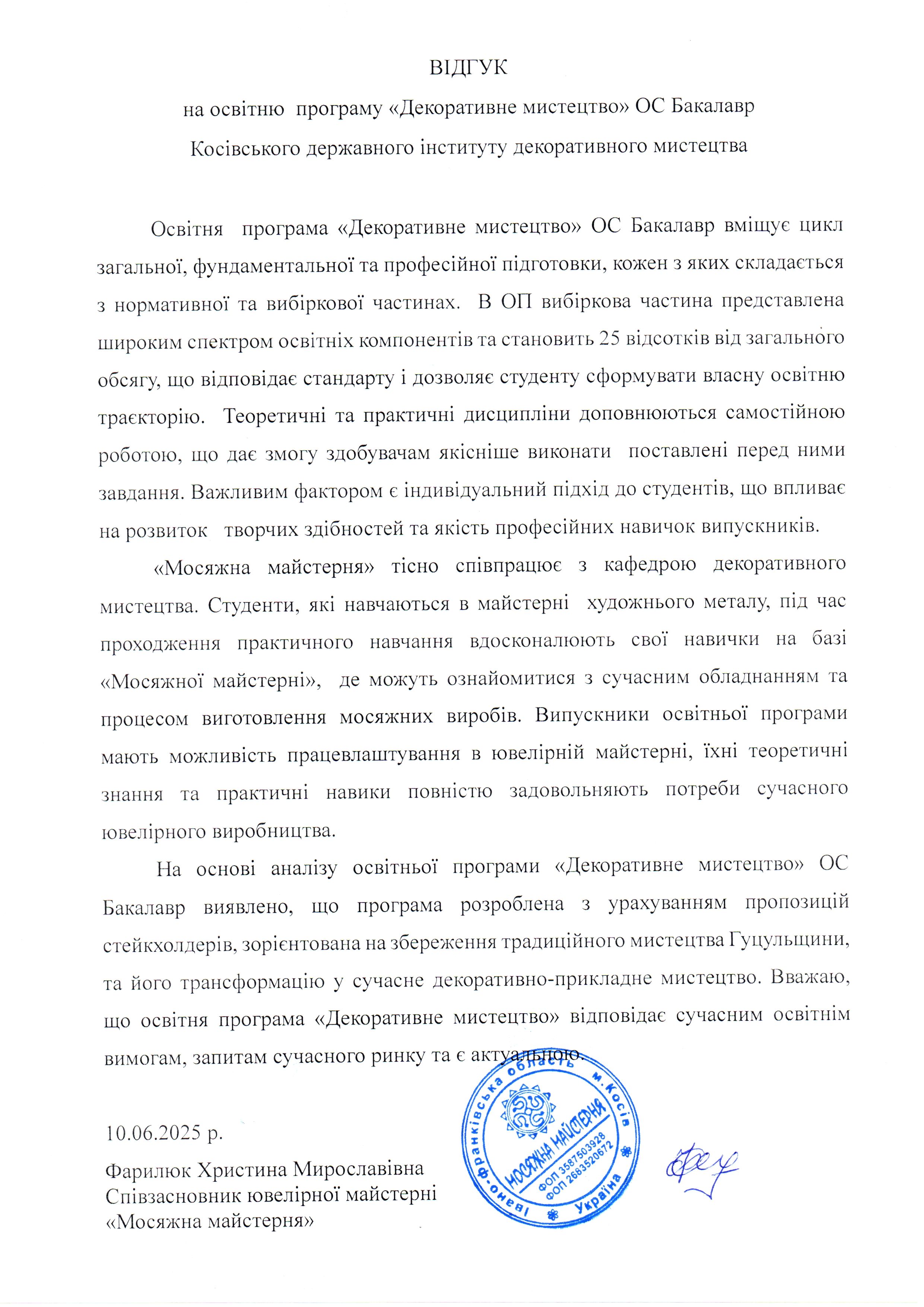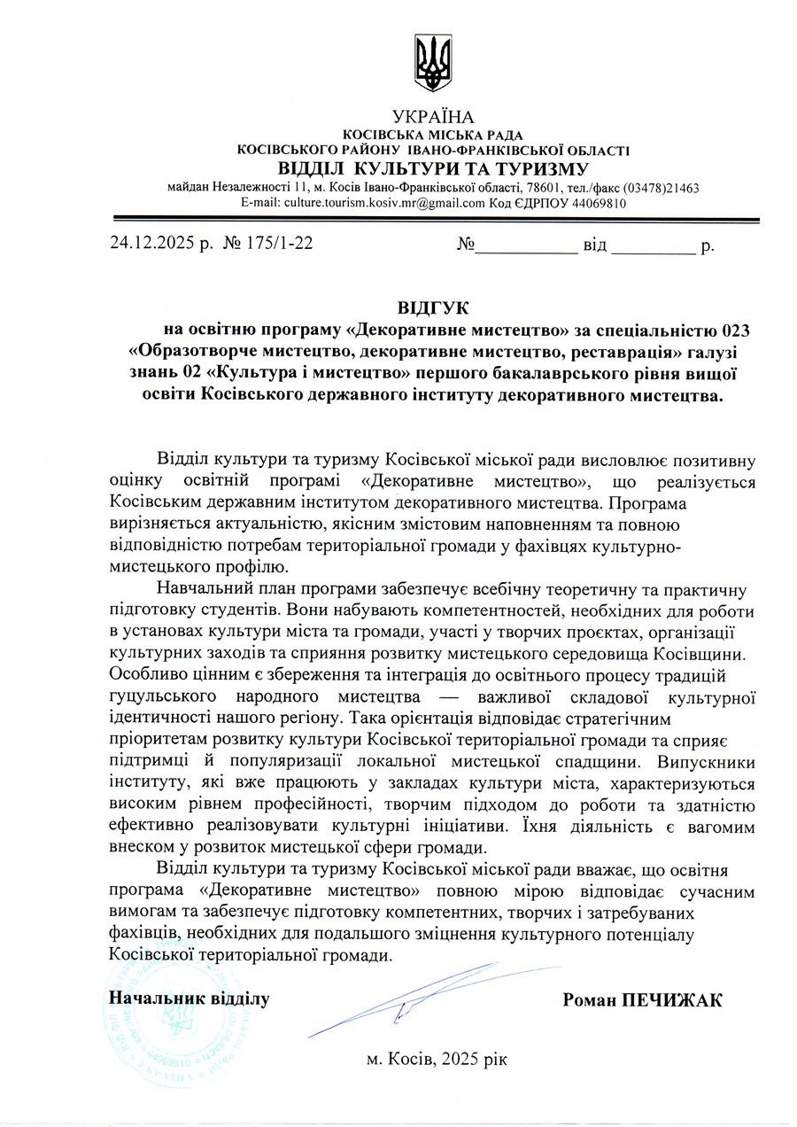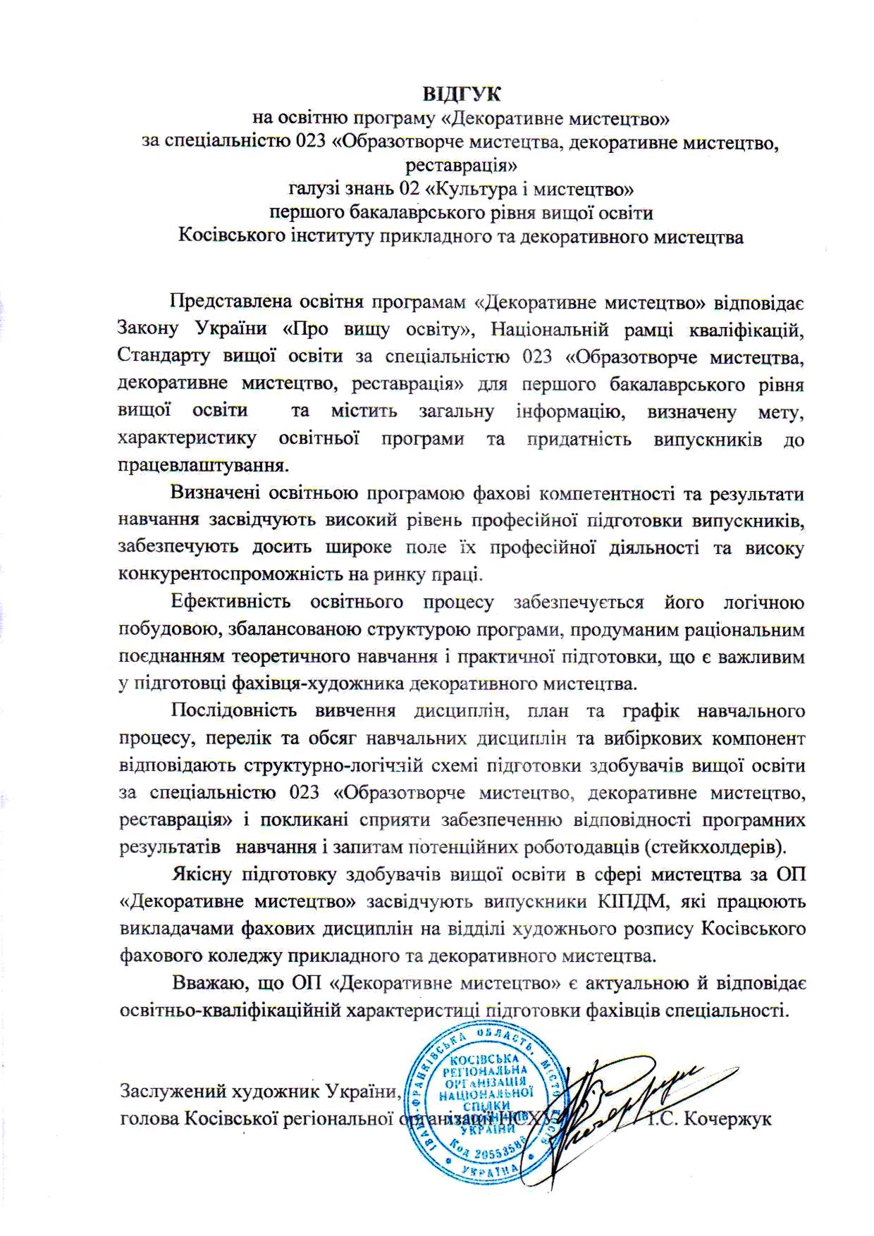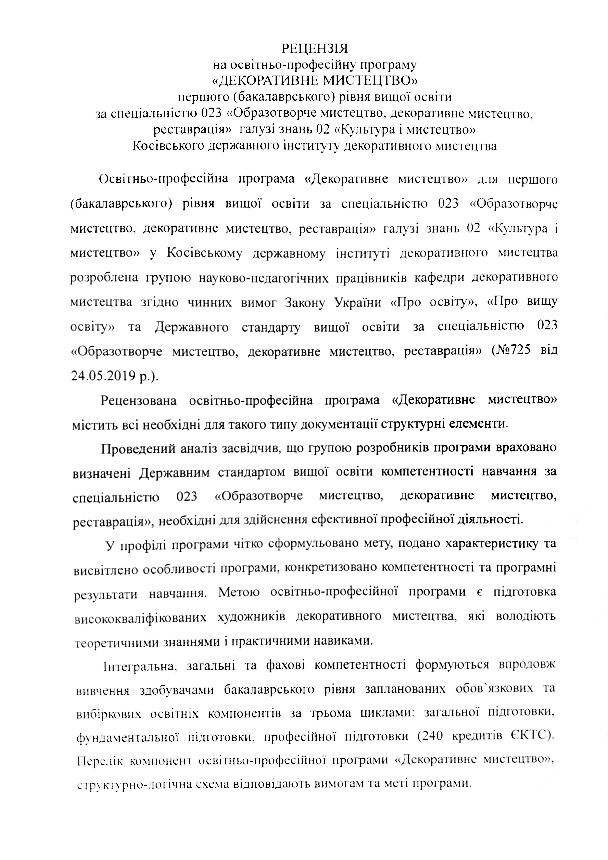 Відгуки на освітню програму "Декоративне мистецтво" ОС БАКАЛАВР