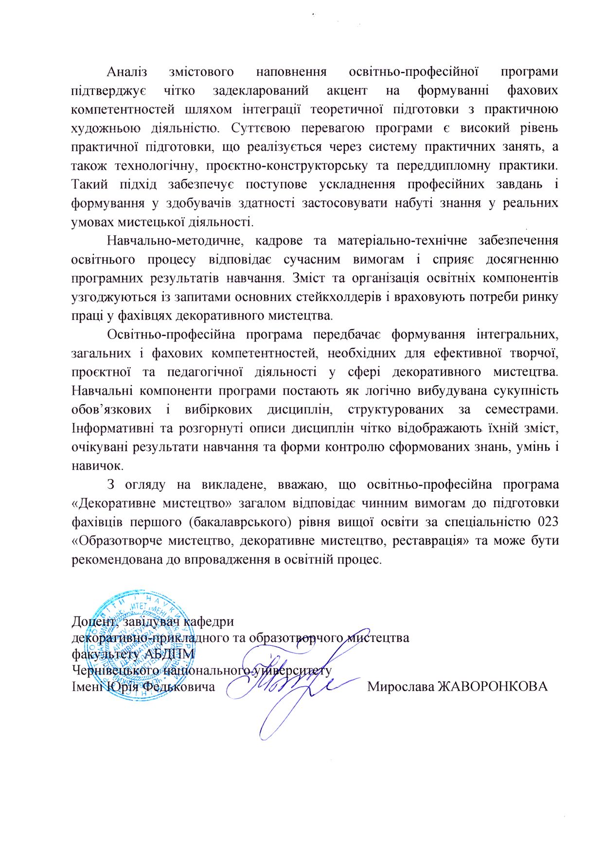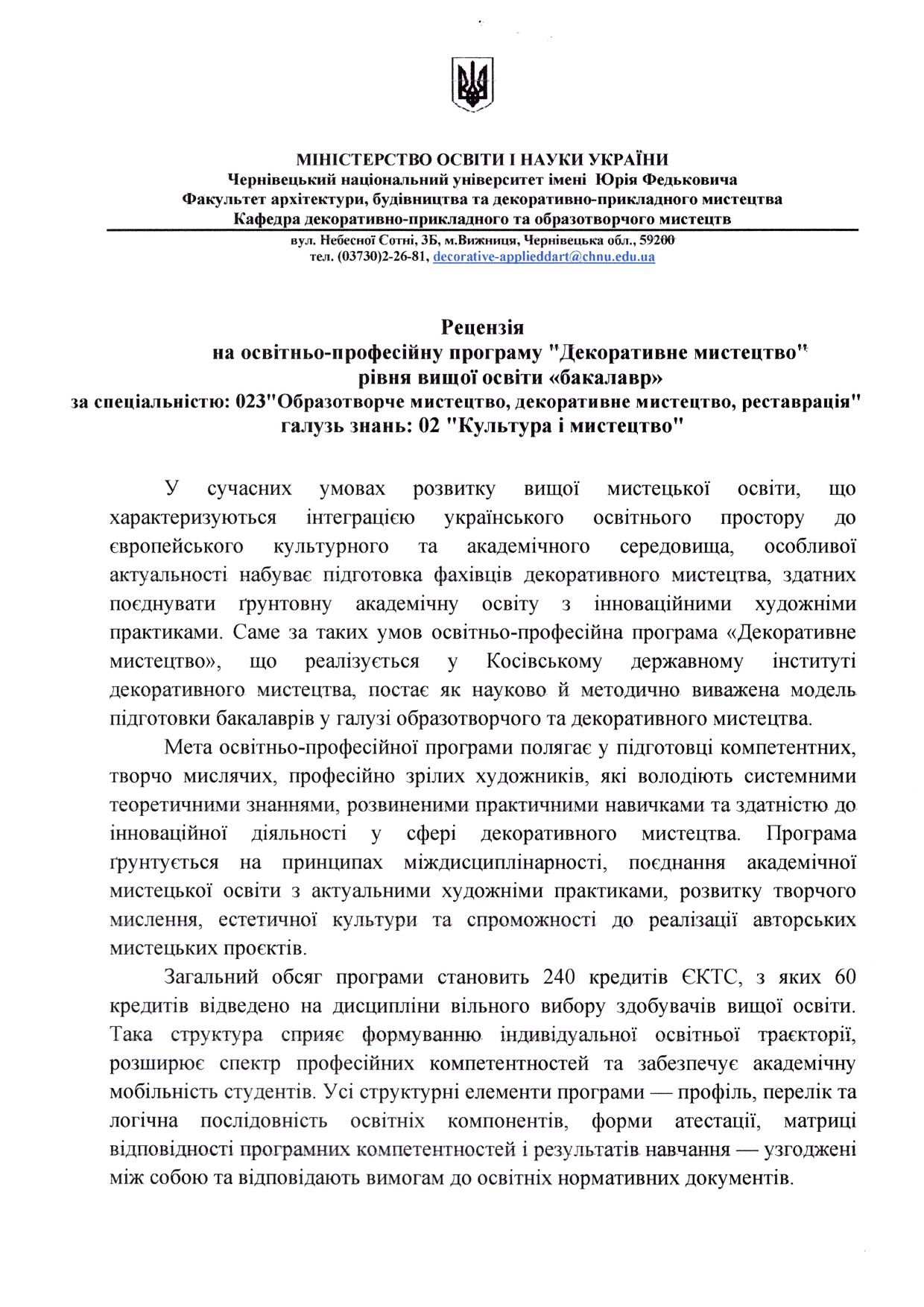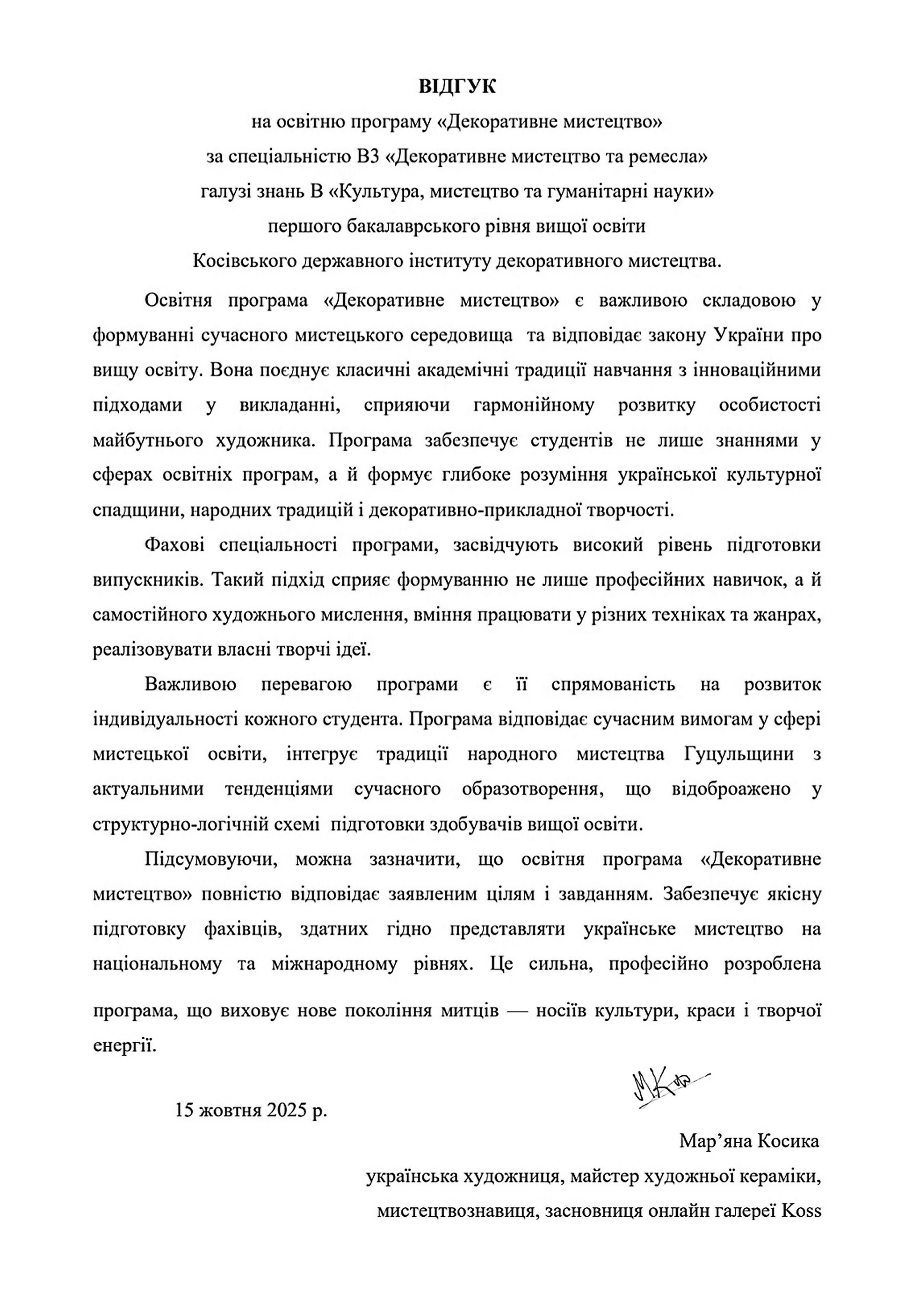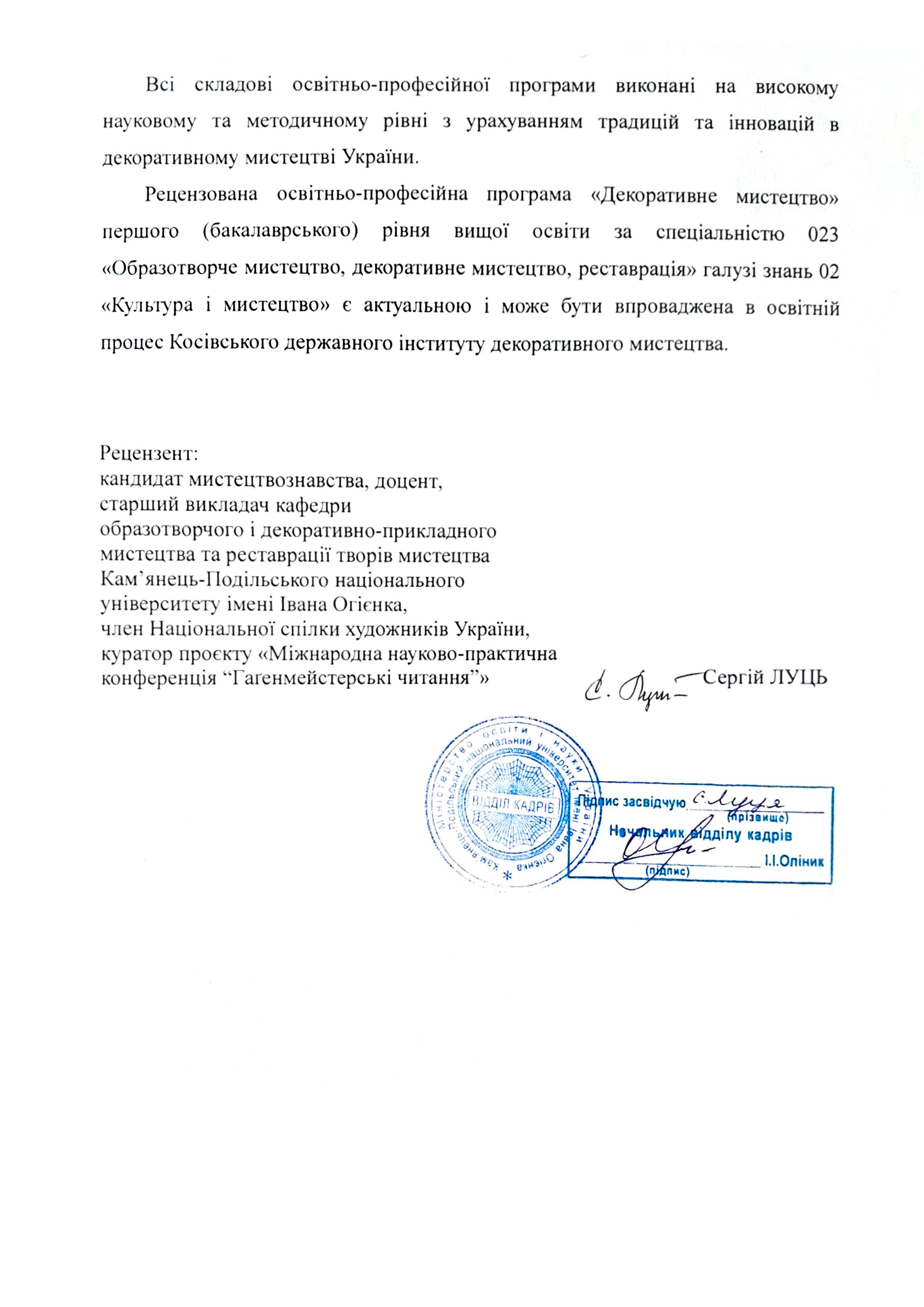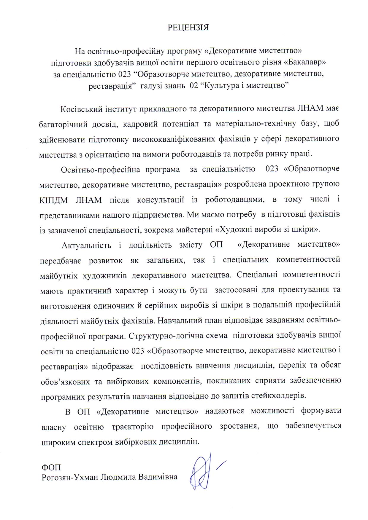 Відгуки на освітню програму "Декоративне мистецтво" ОС БАКАЛАВР