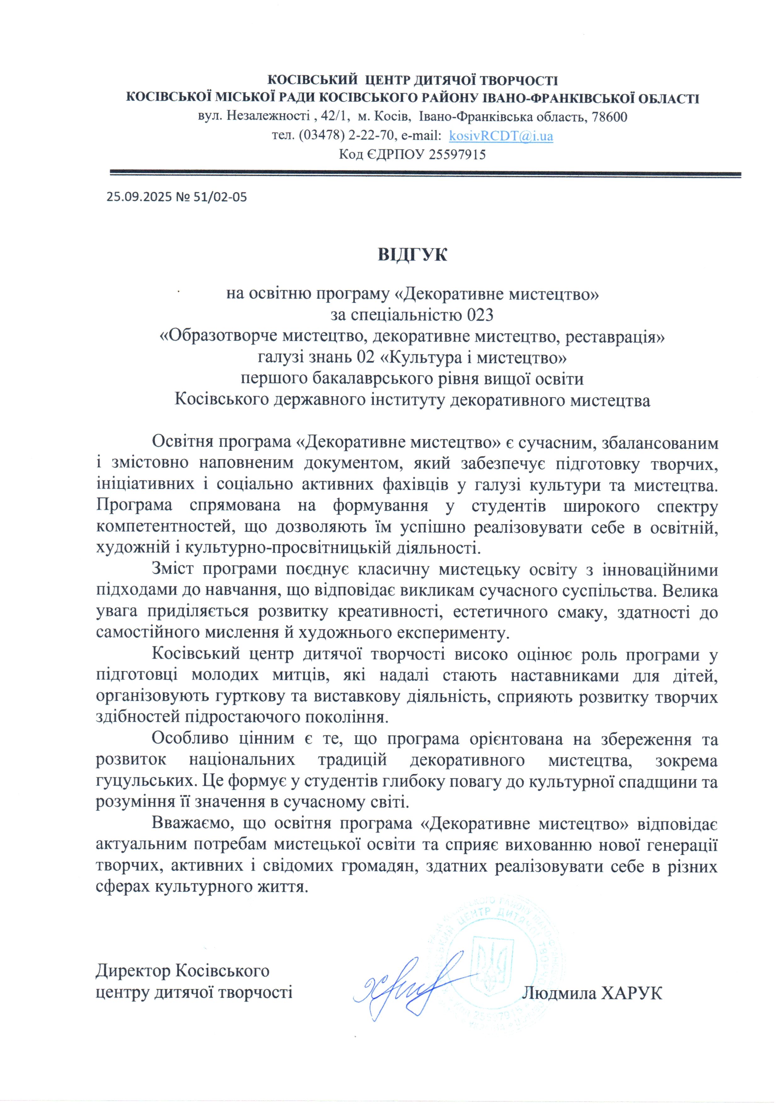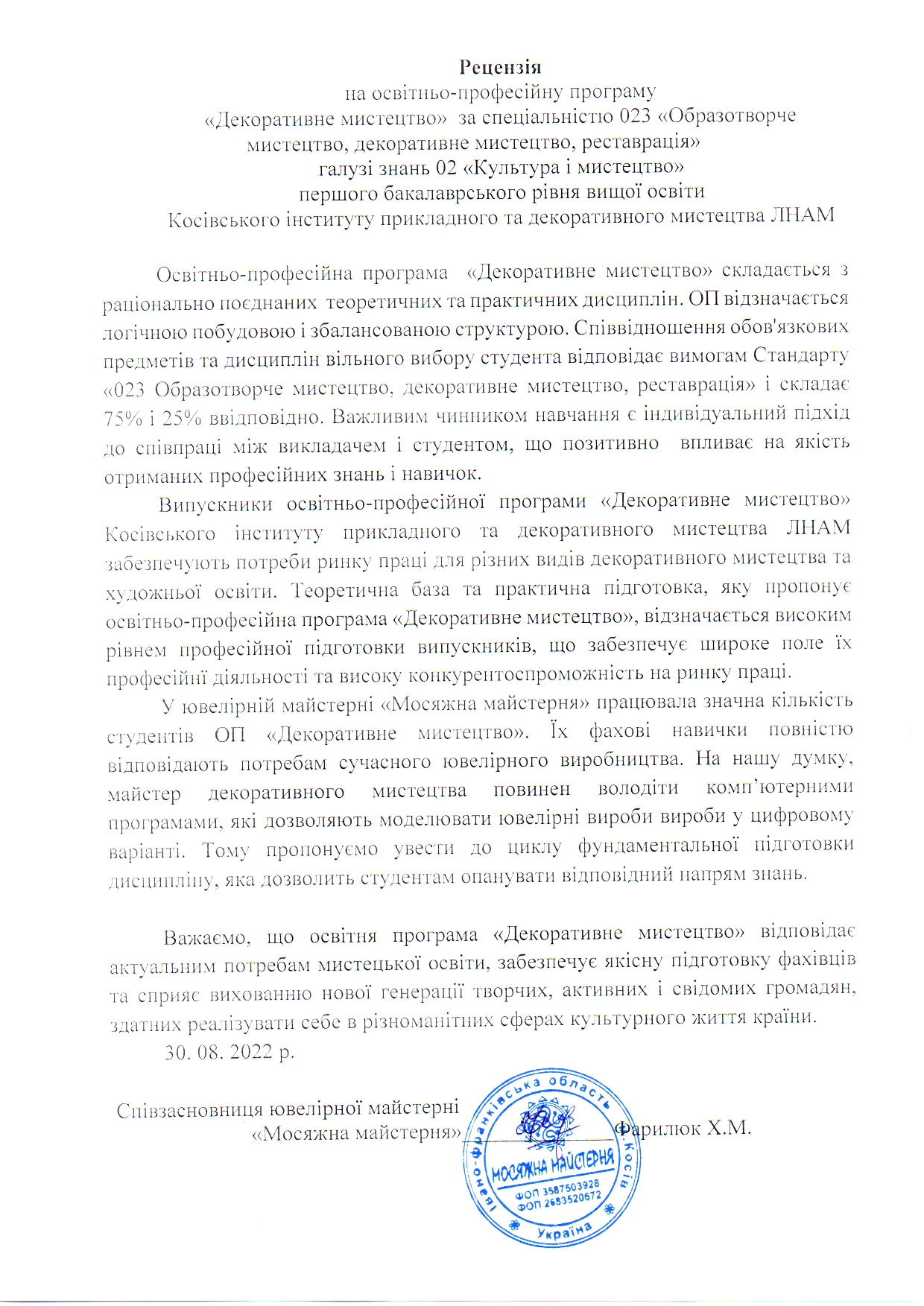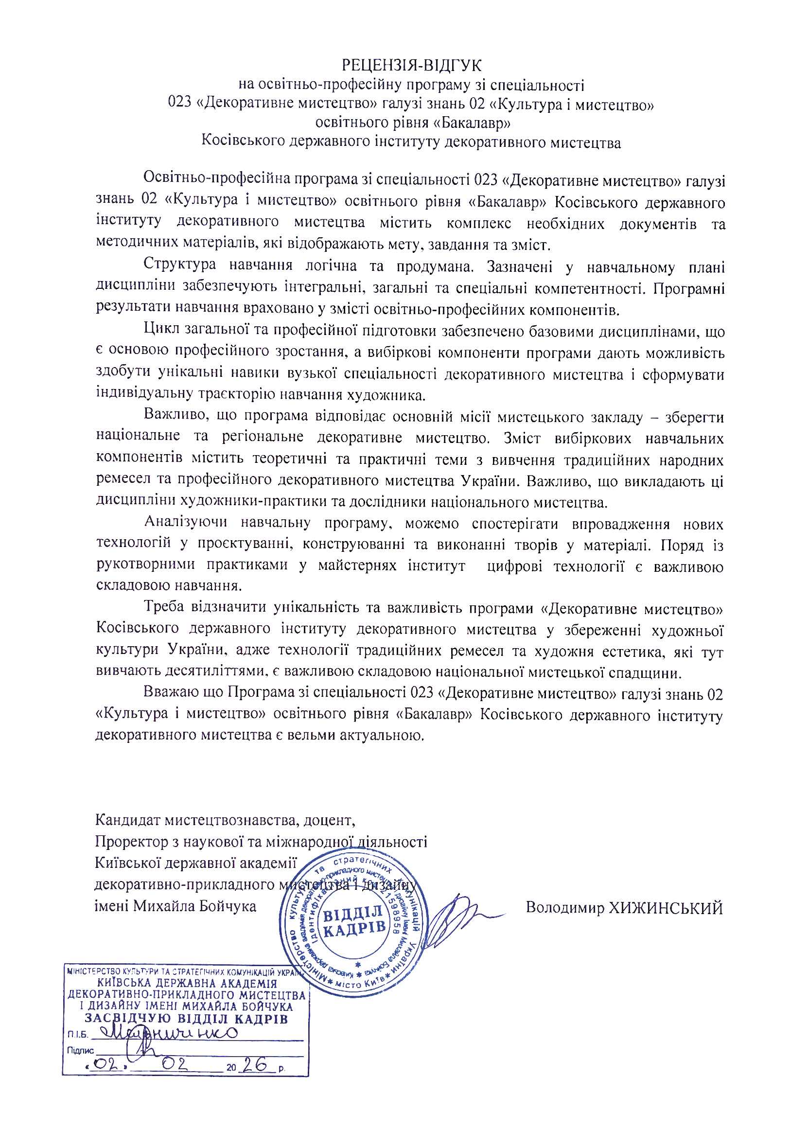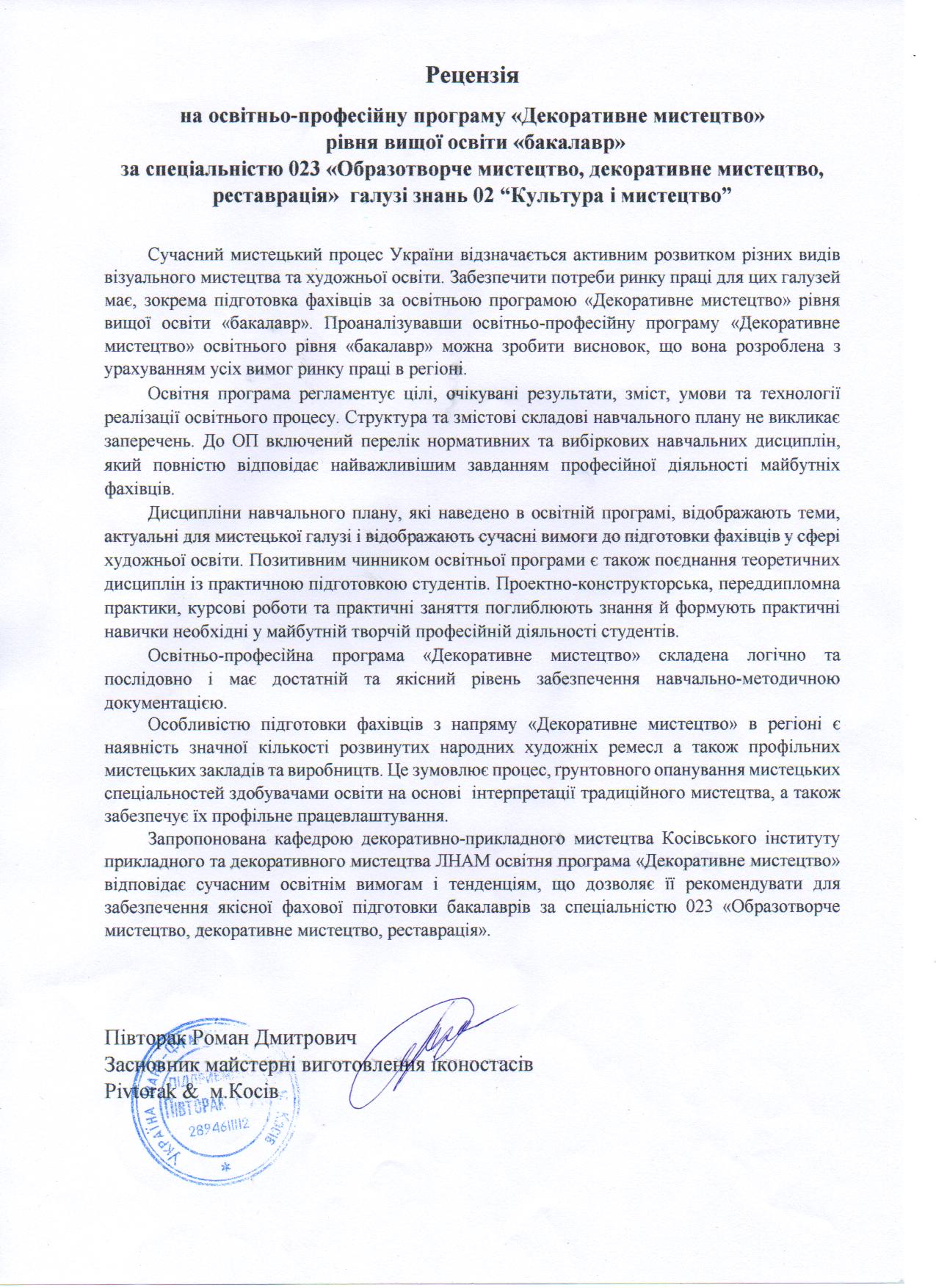 Відгуки на освітню програму "Декоративне мистецтво" ОС БАКАЛАВР
